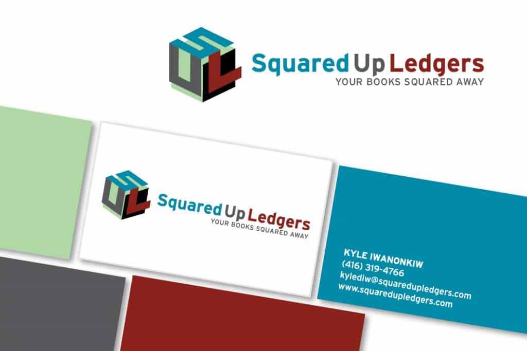 Create a new logo that would make Squared Up Ledgers stand out and give it a more professional look. Design new business cards that they would be proud to hand out.